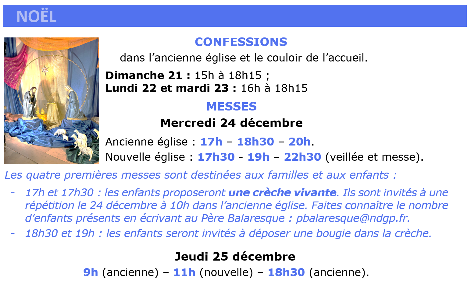 - Participer spirituellement : écrire à l’adresse ndgp-se-transforme@protonmail.com pour faire part de vos idées sur le renouveau des activités de la paroisse.