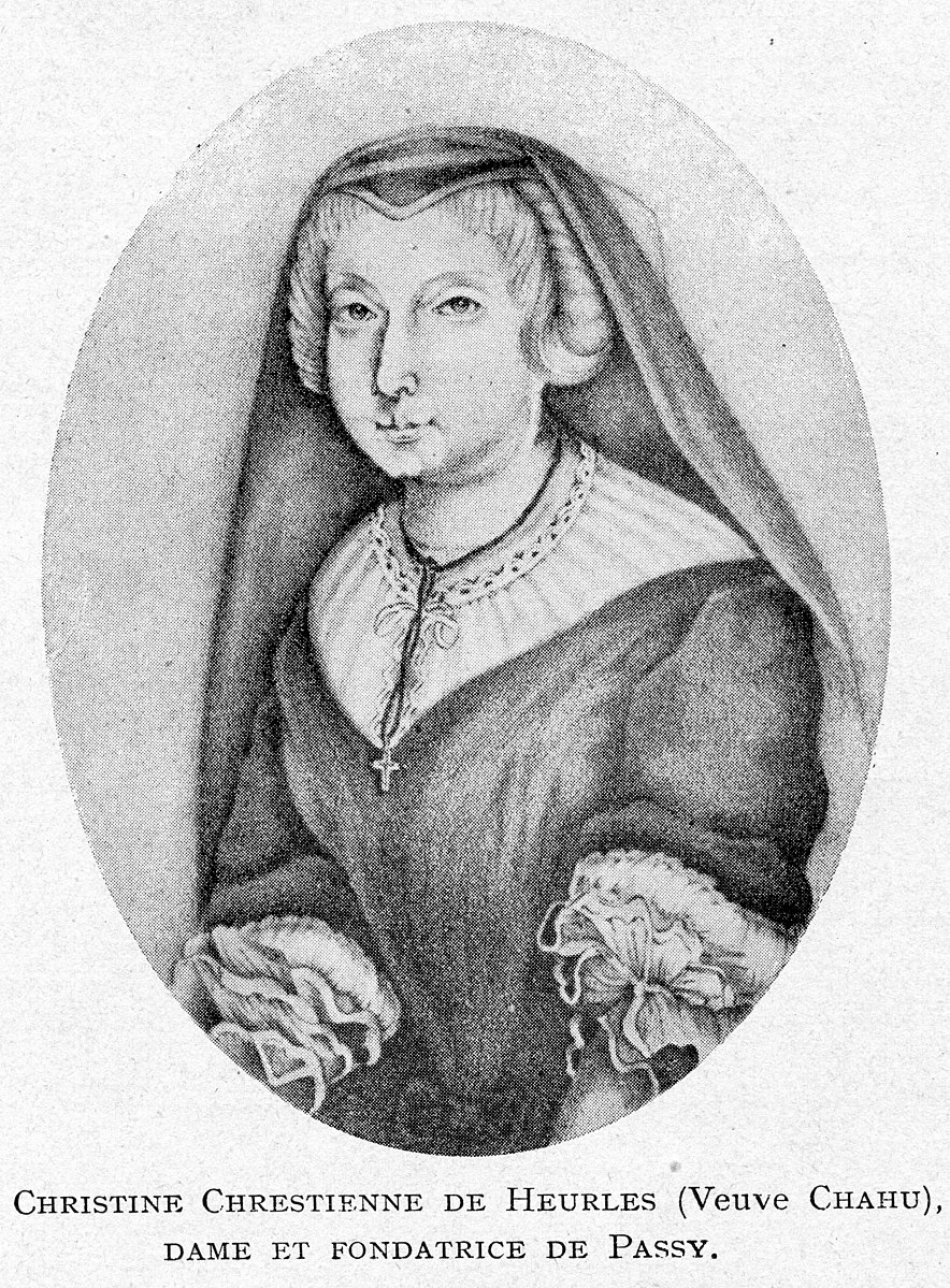 En 1667 Claude Chahu, Seigneur de Passy, entreprend de construire la Chapelle Notre-Dame de Grâce dont l’édification sera achevée par sa veuve, Christine de Heurles (ci à droite). Initialement succursale de l’église d’ « Autheuil », la Chapelle devient paroisse en 1672.